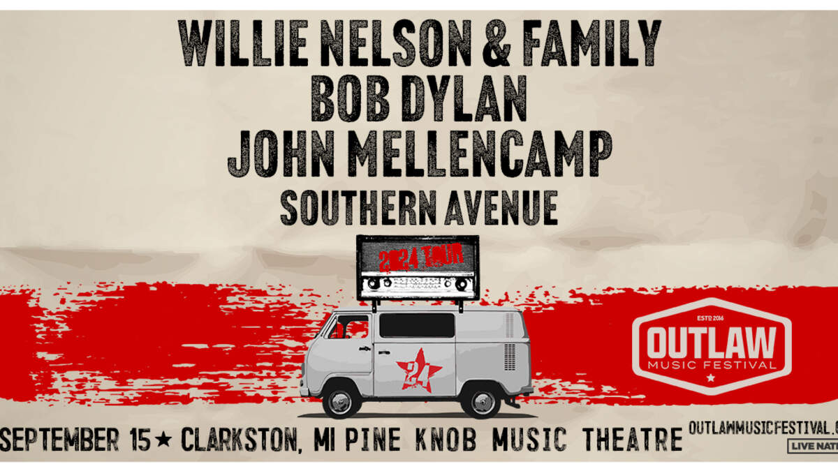 Outlaw Music Festival Willie Nelson & Family, Bob Dylan, John Mellencamp and Southern Avenue September 15, 2024 Pine Knob Music Theatre Tickets On sale: Friday, March 1 at 10a.m. Ticket Link: https://www.ticketmaster.com/event/08006057ECC8564B