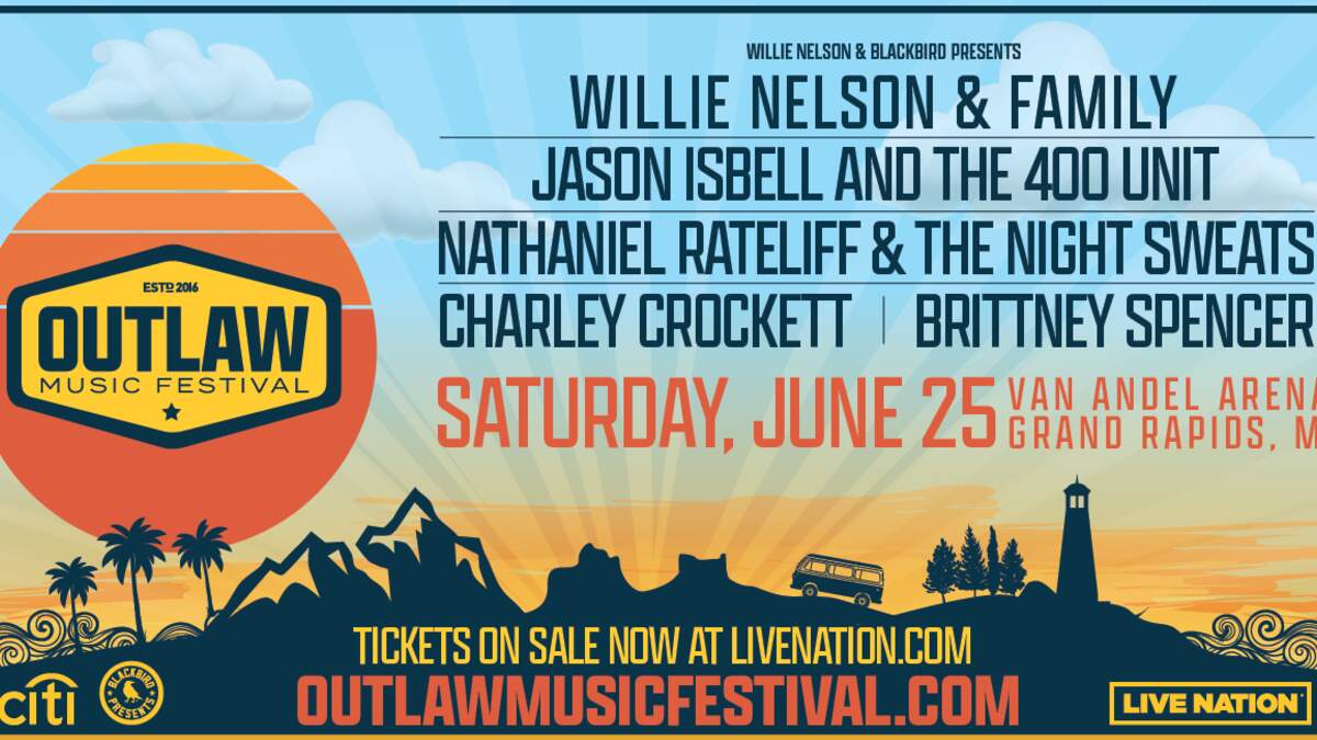 Outlaw Festival Willie Nelson With Special Guests: Nathaniel Rateliff & The Night Sweats Jason Isbell Charley Crockett Brittney Spencer Saturday, June 25 at Van Andel Arena Click here for tickets!